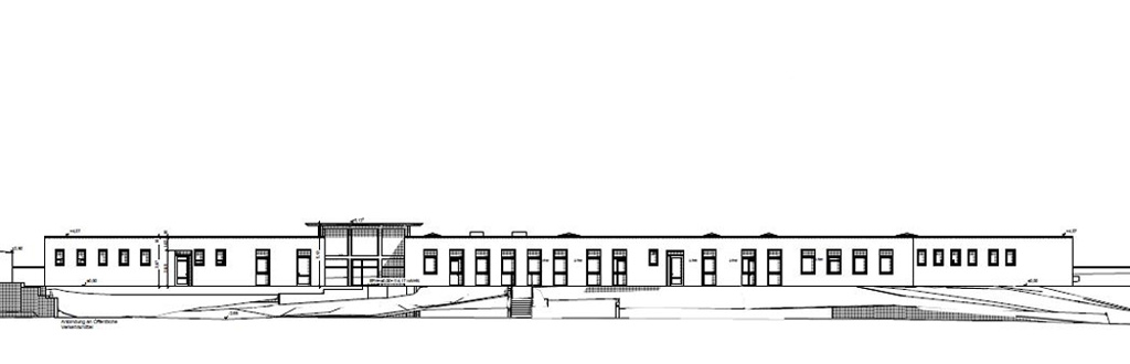 Neubau einer sechsgruppigen Kindertagesstätte in der Castroper Straße in Herne-Holthausen. Die zwei Flügel des eingeschossigen Baukörpers erstrecken sich in Summe über 84,00m und treffen in einem baulich erhöhten Foyer aufeinander.