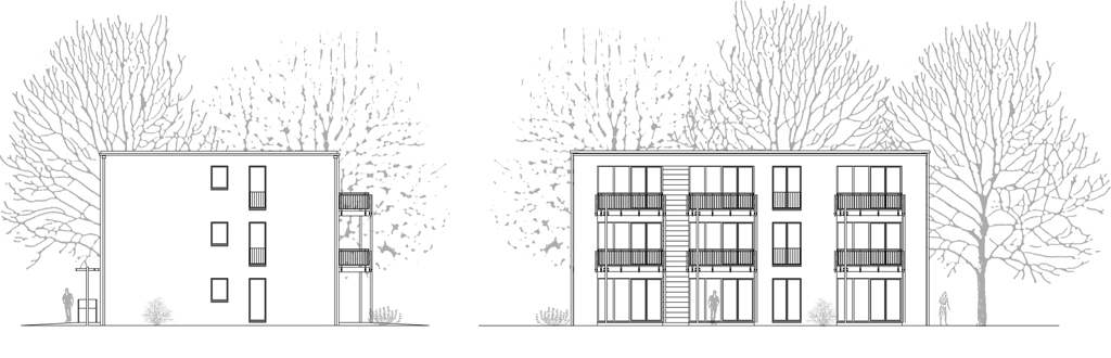 Am Standort Brüggenfeld / Am Bellwinkelhof in Dortmund entstehen vier Mehrfamilienwohnhäuser mit insgesamt 40 Wohneinheiten.